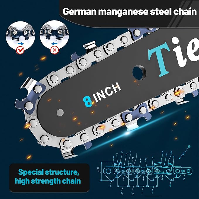 - Rock-Steady Chain Tension:This mini chain saw’s chain tension system keeps things tight and secure, effectively preventing it from jumping or falling off during cutting. Use the included screwdriver to tweak it for any job—it’s all about safety, precision, and getting stuff done faster.