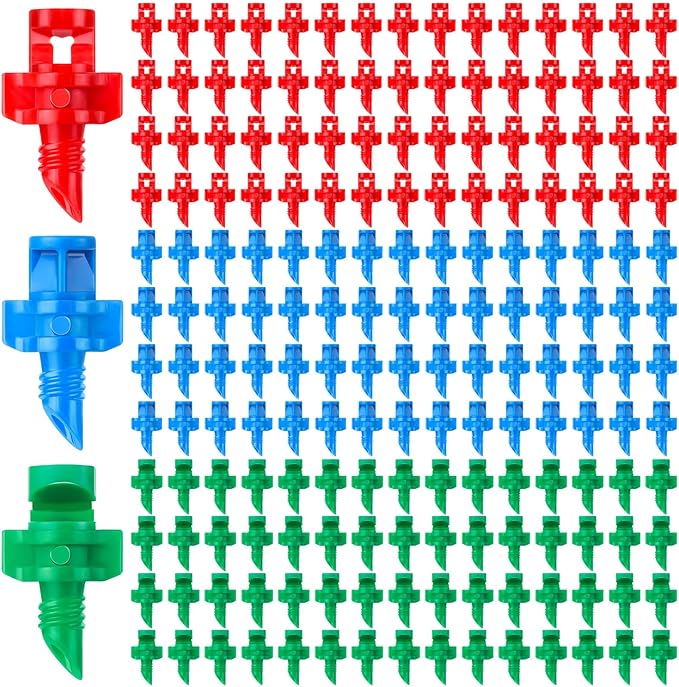 • GARDEN SPRAY: Size of lawn spray is 21x12mm/0.82 x 0.47 inches, and there are 180 drip irrigation system sprinklers in total. Enough for you daily use and replacement