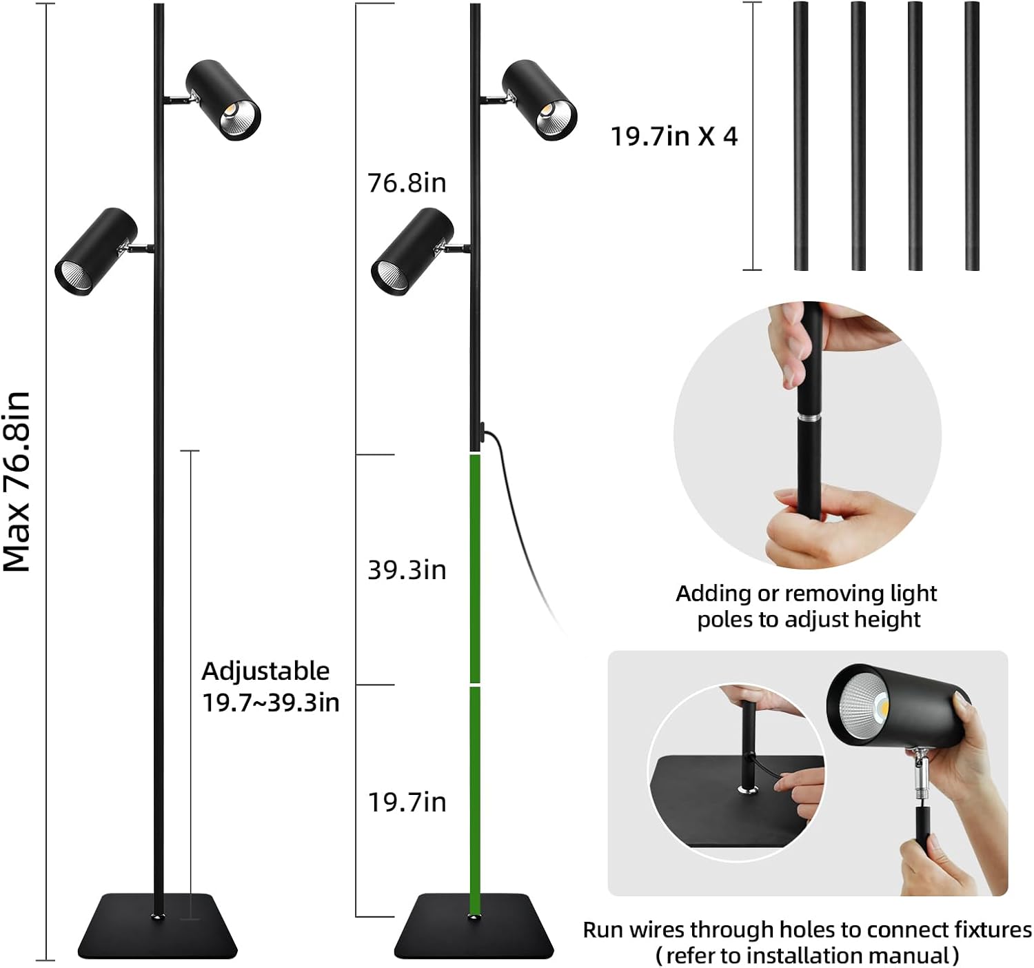 • ๐Ÿ“ ใ€Dual-Head & Adjustableใ€‘Customize the height from 37" to 77" with modular extension poles. The 360ยฐ rotatable heads direct light exactly where itโ€™s needed, while the slim, stable base fits neatly into small apartments or office corners. Features 10-level adjustable brightness to suit different plants and growth stages, covering an effective area of 53.82 sq. ft.