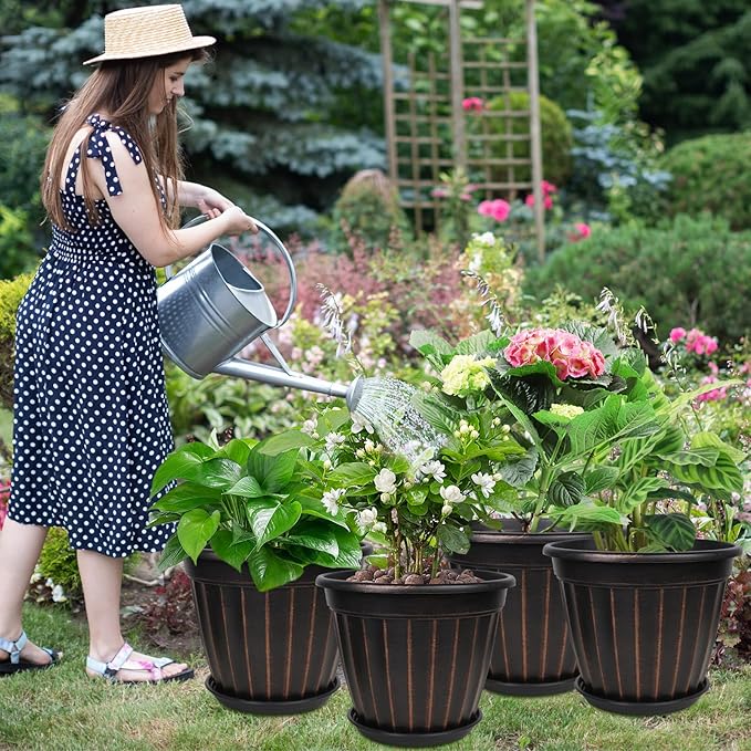 • 【Versatile】Flower pots are perfect for growing most houseplants and flowers, such as Bird of Paradise, Serpentine Moonflower, Majesty Palm, Succulents, Herbs, Rosemary, Basil, Lemon, Thyme and Mint, Aloe Vera, Serpentine, African Violets, and Peace Lily. Garden planter container in rolled rim will be easy to move when need.