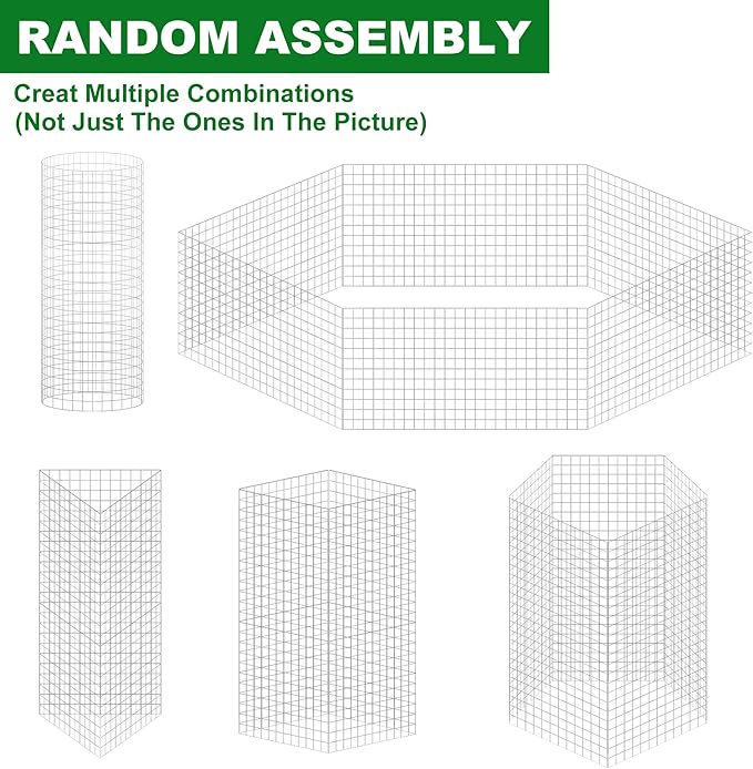 • Easy to Assemble & Store: The 12 set wire plant protectors are designed for quick and easy assembly without tools. Your will get a set of metal mesh plant protector including 36 sheets of wire plant protection panels, 36 U shaped garden stakes to secure it firmly, 200 pieces of nylon ties and a pair of gloves. Stackable and foldable, they are convenient to store when not in use, making them ideal for seasonal gardening.