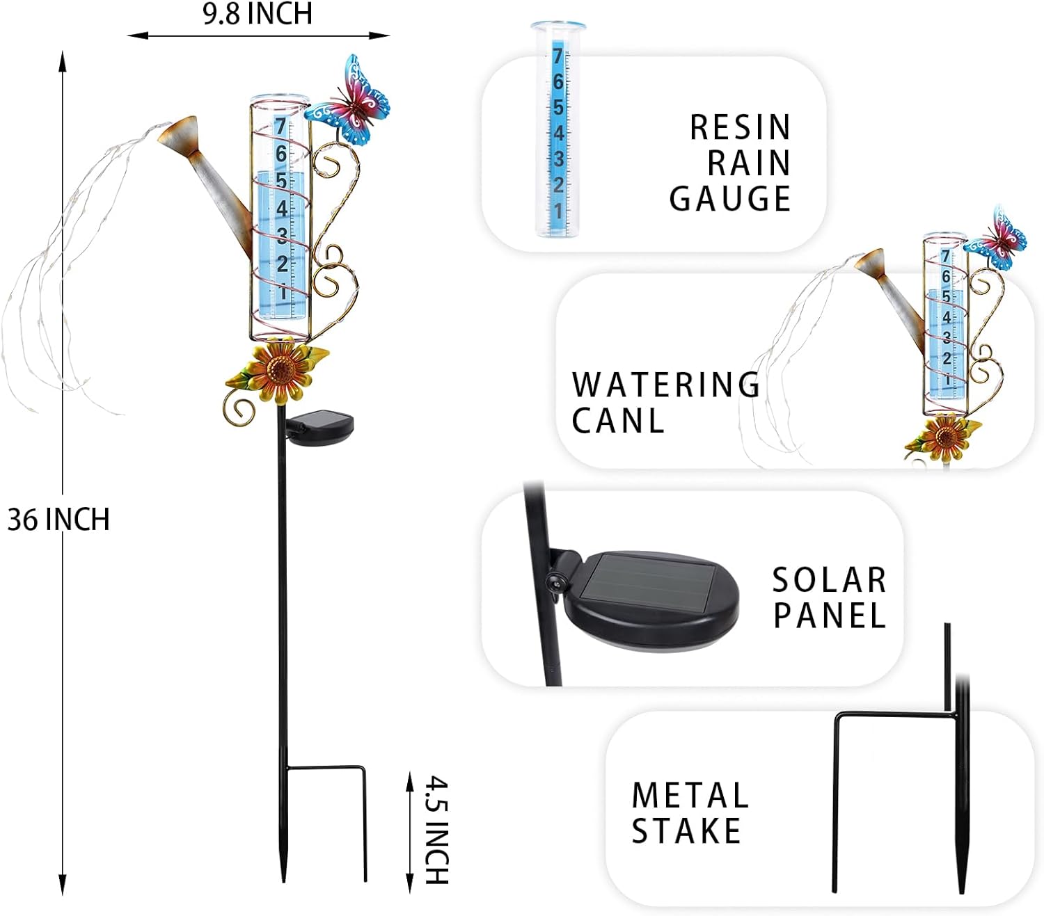 MUMTOP Rain Gauge Outdoor Solar Powered, 36 Inch Large Number Watering Can Water Gauge for Lawn, Yard and Garden
