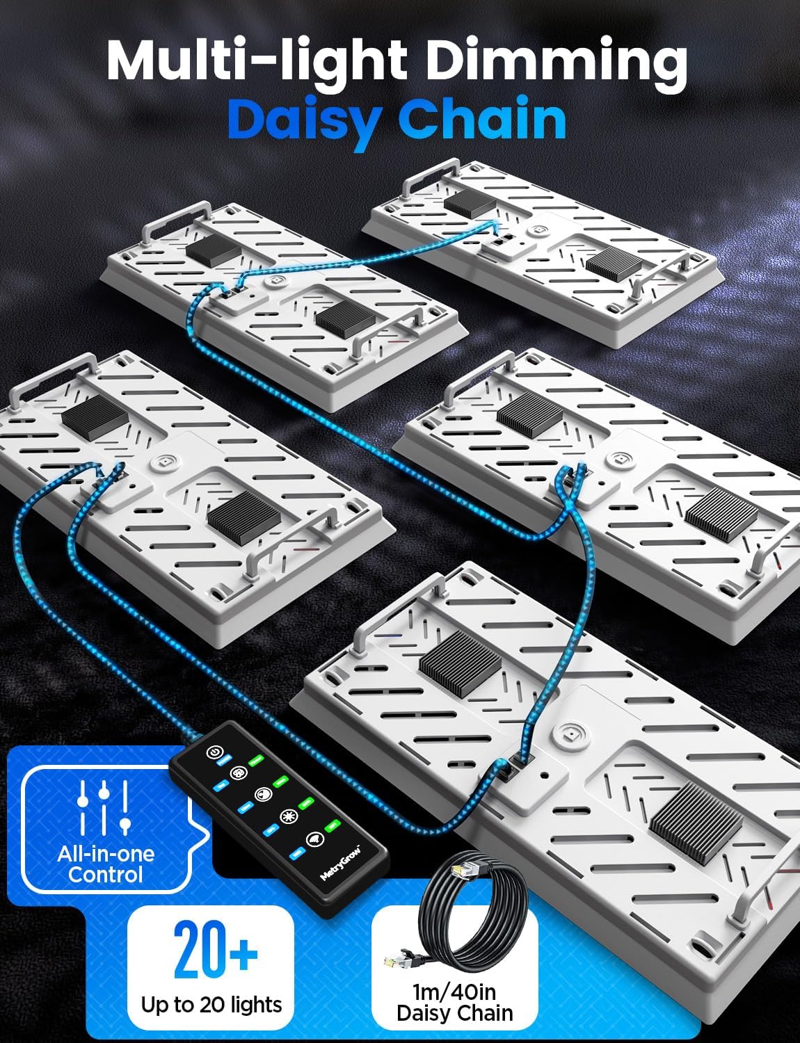 - 【Powerful and Versatile Connectivity】: Designed for maximum convenience, our grow light system supports seamless daisy-chaining of up to 20 lights, allowing you to illuminate large indoor gardens with ease. Whether you're nurturing a small seedling tray or an extensive indoor plant collection, the synchronized setup ensures uniform lighting across all connected units.