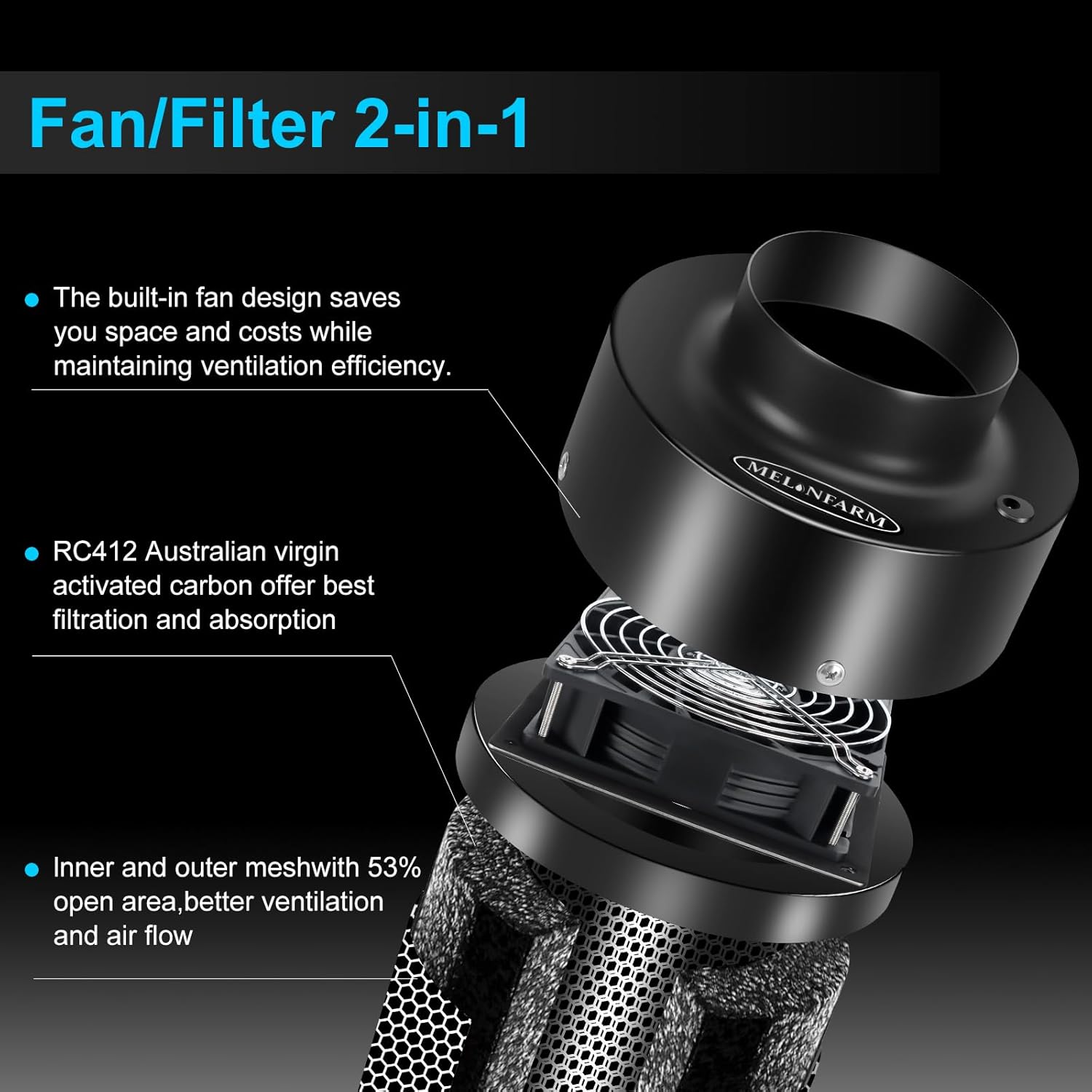 • Powerful & Efficient Ventilation: Our air carbon filter smelliness control has built-in ventilation fan, strong power, low noise, it can generate 190 CFM airflow, effectively ventilate the grow tent, transfer heat or cool the room, circulate fresh air, improve airflow and reduce humidity. Equipped with deflector, it can focus the fan airflow and reduce turbulent kinetic energy.