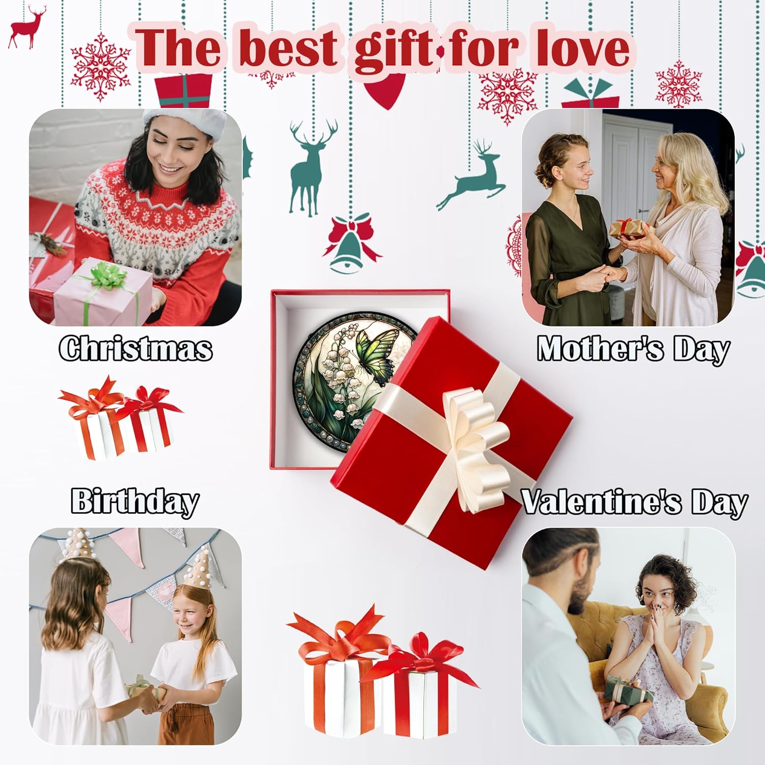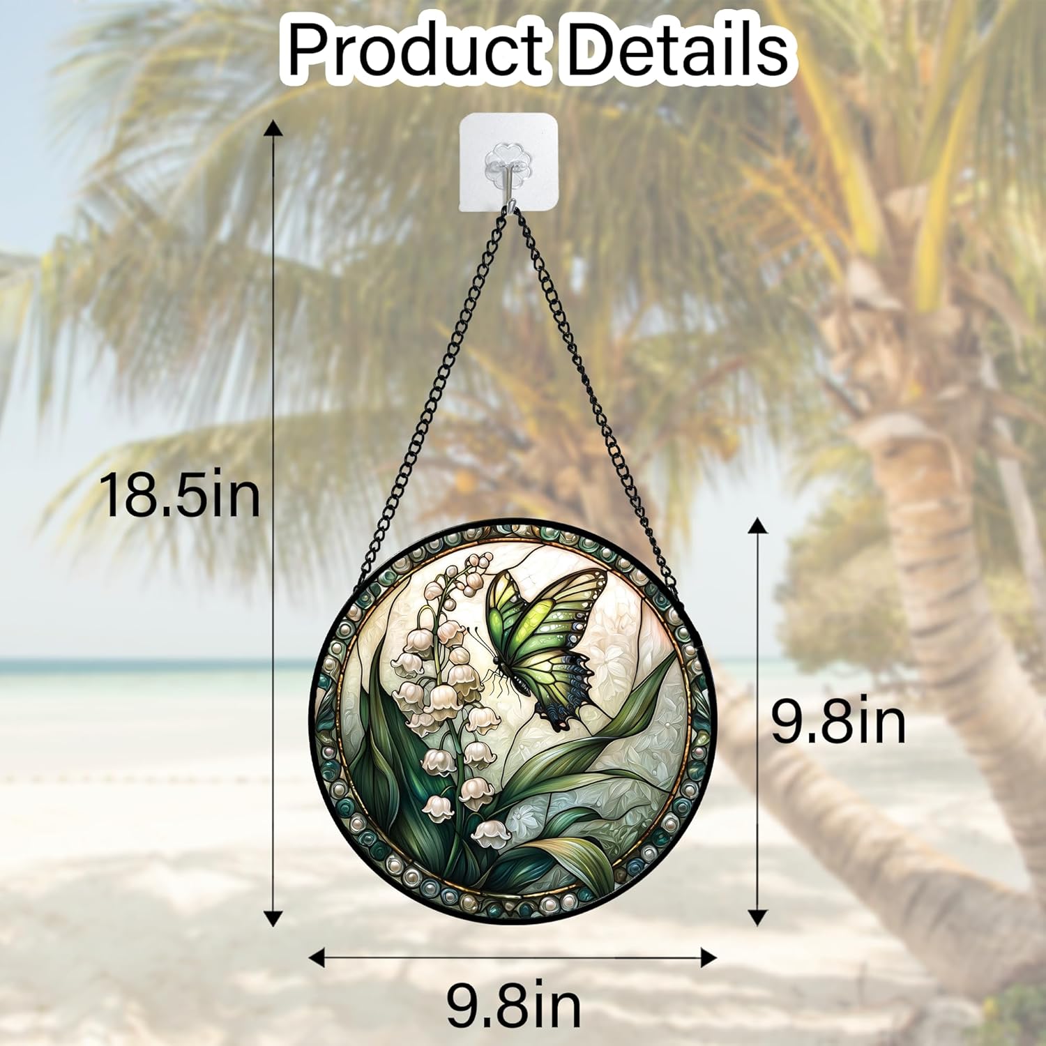 Stained Glass Window Hanging, Lily of The Valley Flower Butterfly Suncatcher for Doors Home Sun Catchers Decoration and Christmas, Mother's Day Birthday Gifts for Women, Men, Mom 9.8 in
