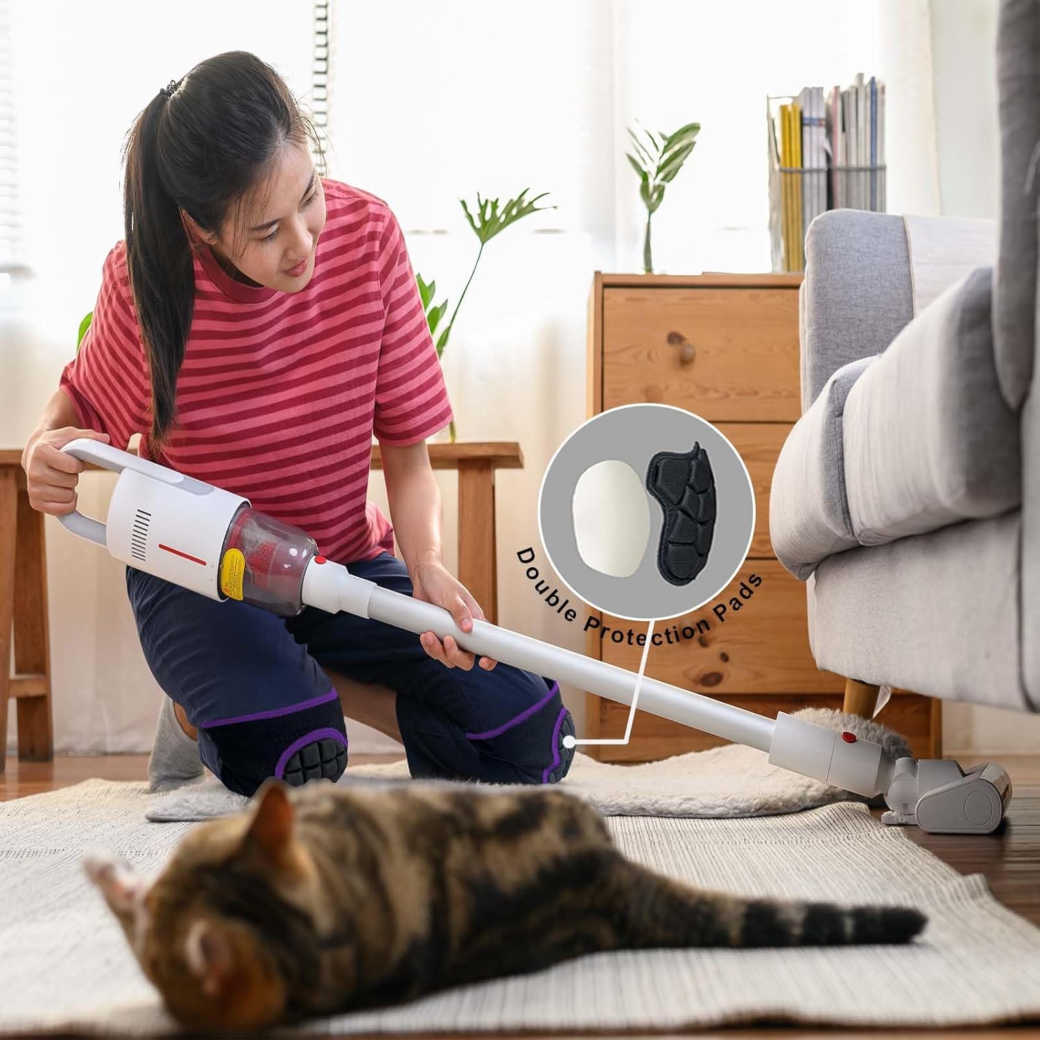 • UPGRADED STRAPS - THINNER:Cleaning knee pads 2.0 (rodilleras de trabajo) are made of neoprene fabric . The straps are only 2" wide, which can effectively prevent the discomfort caused by the straps squeezing when the knee is bent. This fabric is elastic, non-linting and very comfortable. With the hook and loop tape design, it is more adhesive and you can easily adjust the strap to fit your knees better. The left and right straps are designed to stick outward separately to prevent the hook and loop tape from sticking to each other