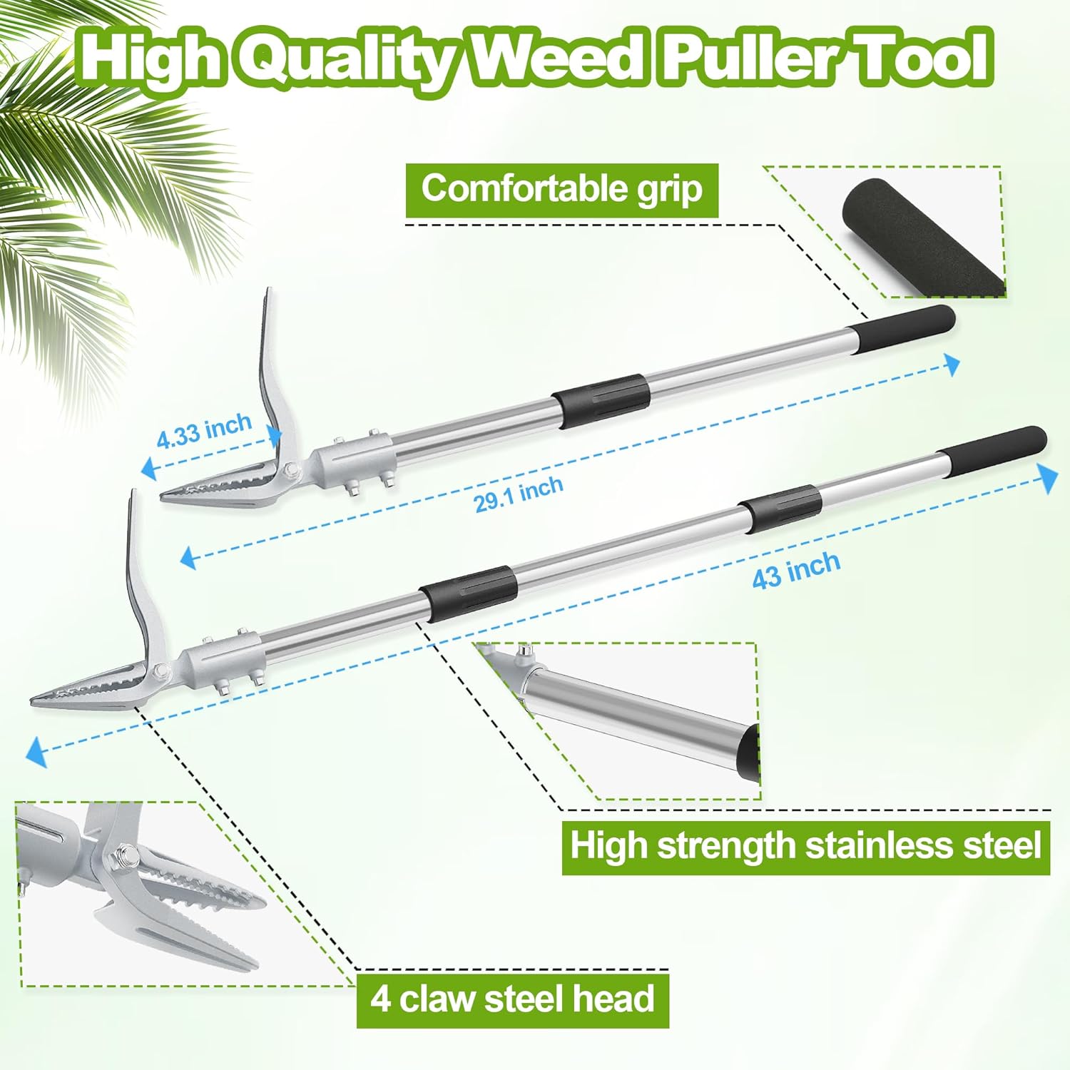 • Manual Weed Puller: The stand up weed puller tool with 43'' long handle save your back & knees, remove weeds easily without bending, pulling or kneeling.