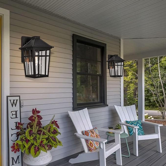 Darkaway 2pcs Outdoor Sconce Lights Wall Light Fixtures, 14inch Large Porch Light Outdoor Wall Anti-Rust Black Aluminum with Glass for Patio Yard Doorway Garage