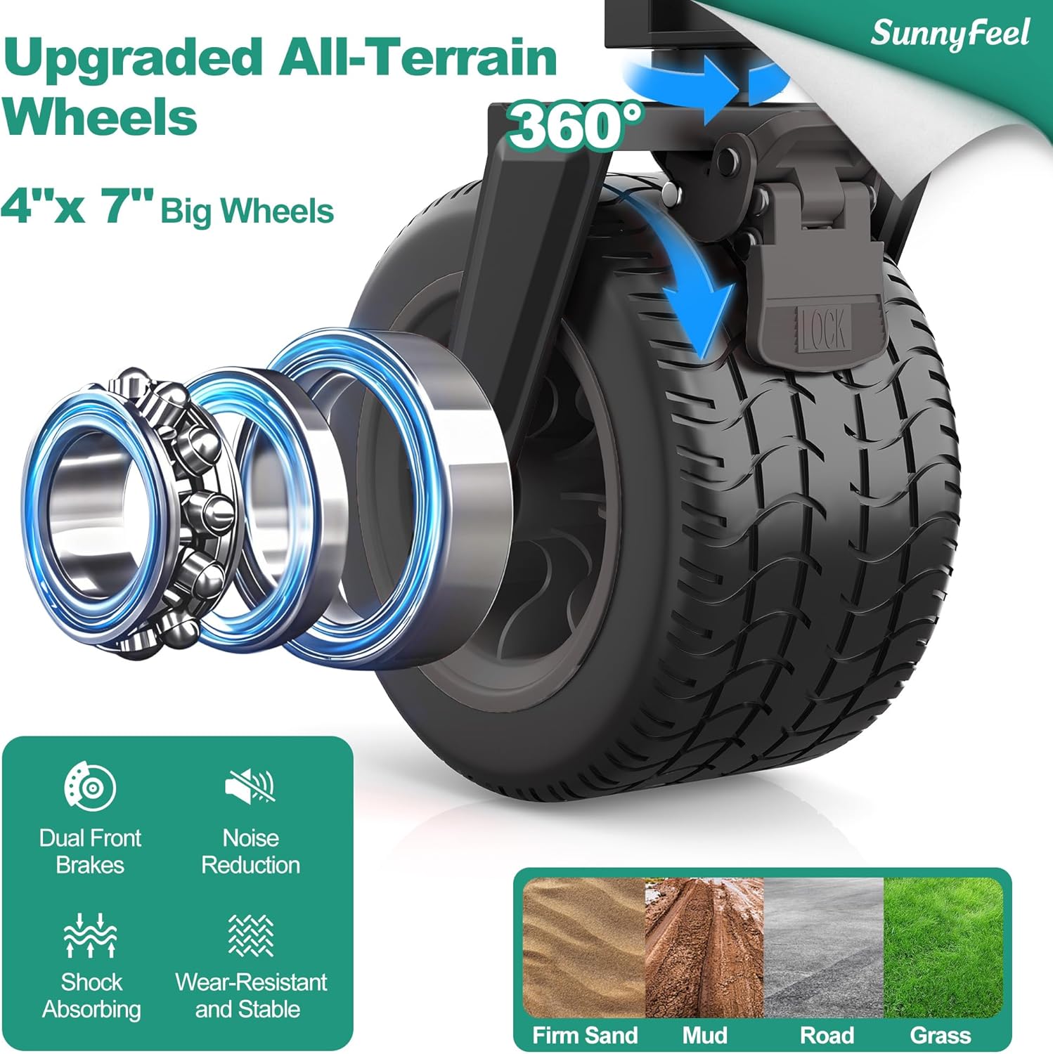 • 【Upgraded Capacity & Extra Long Decker】The SunnyFeel wagon is built to effortlessly manage heavy loads with its expansive interior, impressive weight capacity and extra long decker. Its enhanced design easily fits camping gear, groceries, or outdoor supplies in one convenient trip, simplifying your transport needs. With a spacious 300L capacity, it delivers dependable performance for tough tasks