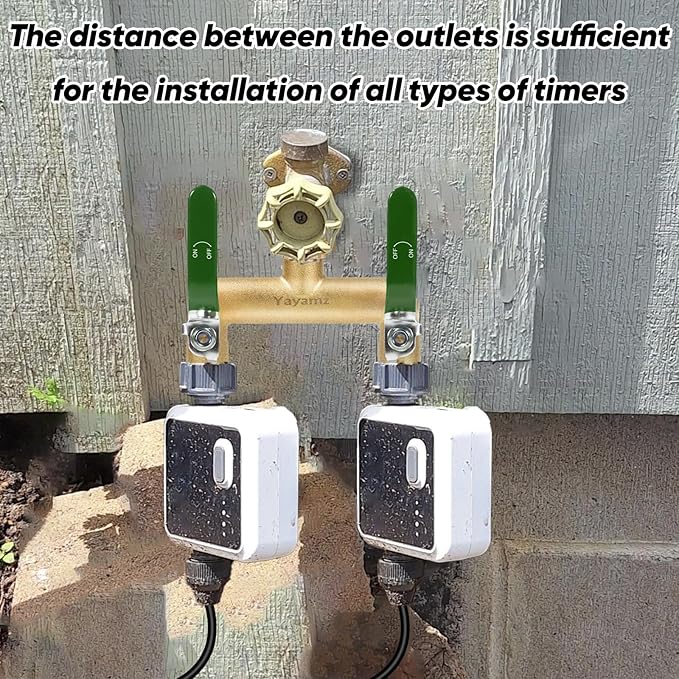 • 2: We have widened the distance between spouts for installations designed to use multiple garden irrigation system timers at the same time, as well as for a wide variety of commercial faucets, waterers, hoses and other large tool dispensers, providing more flexibility and convenience for gardens, bathrooms and other settings. Spout spacing is 2.95 inches.
