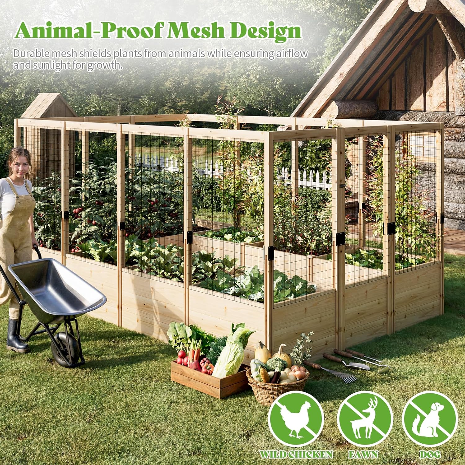 PaPaJet Wooden Raised Garden Bed for Outdoor, Deep Large Planter Box with Netting for Gardening, Vegetables, Flowers, Herbs(7.5× 11.8× 5.9FT)