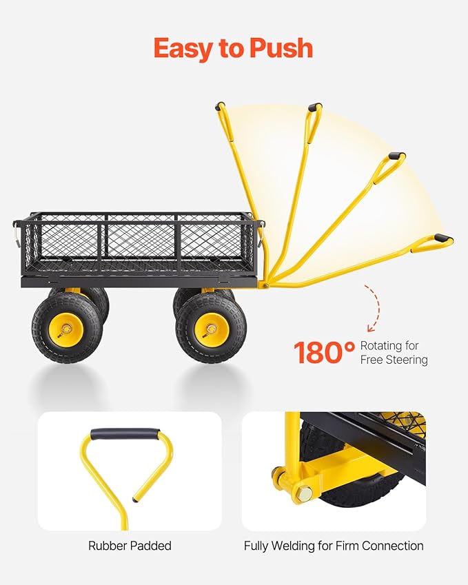 VEVOR 500 Lbs Steel Garden Cart, Heavy Duty Garden Wagon Cart Pullable on Wheels, Metal Yard Utility Wagon Carts with 10" All Terrain Tires, Mesh Removable Sides and 180°Rotating Handle