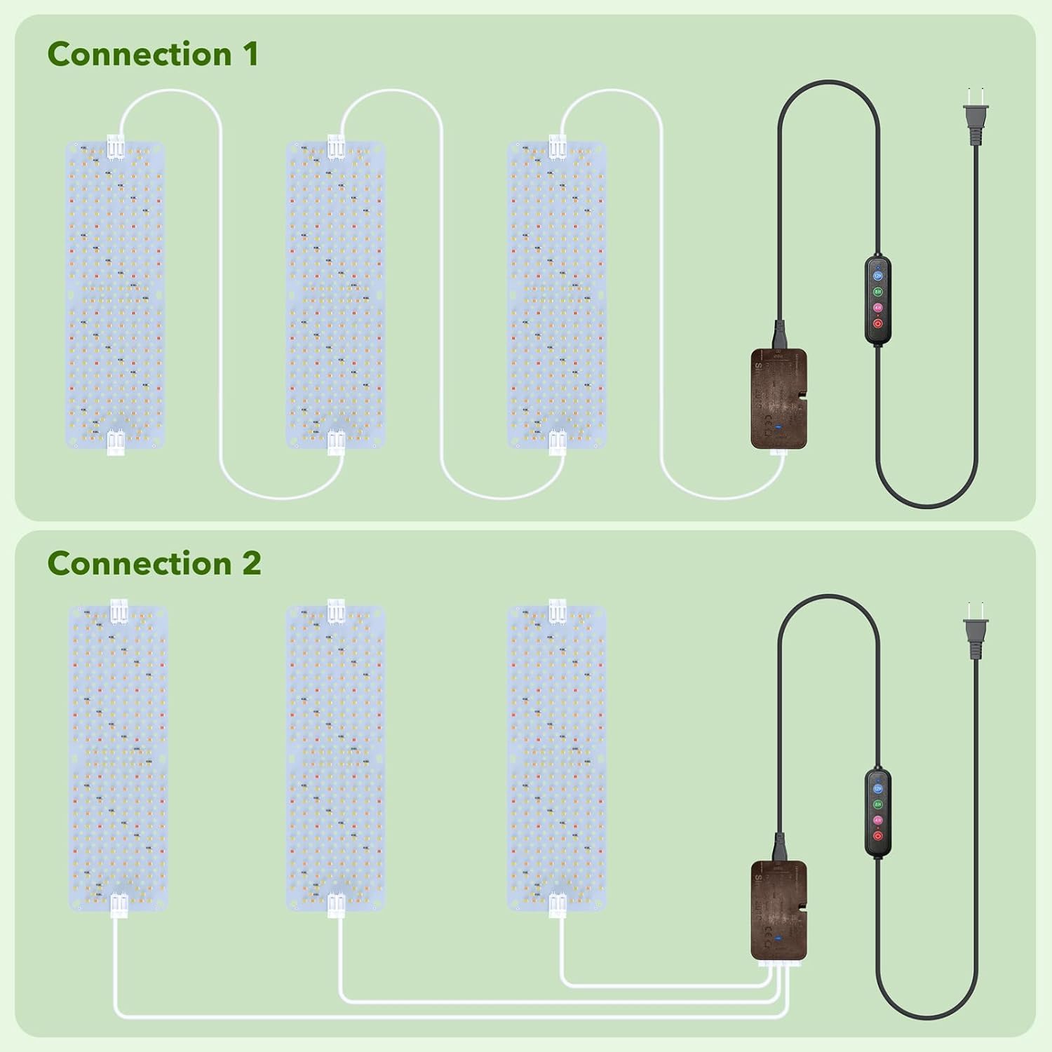 • [Modular LED Grow Panel with Daisy Chain Design] – This linkable grow light panel offers a professional solution for both hydroponic and green house. Easily connect up to 10 panels in series or parallel using the included 8.2ft power cord and 3.28ft link wires. Ideal for small to big indoor setups—whether a 3x3 or 4x4 grow tent, shelf, or commercial greenhouse.
