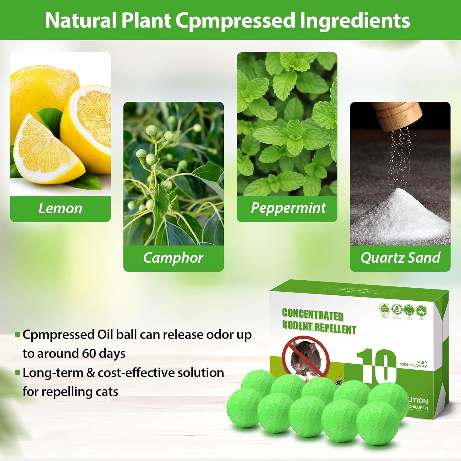 • REPEL RODENT NATURALLY & EFFECTIVELY - Mouse deterrent balls emit strong essential oil scent, which causes strong irritation to rodent's nerve center, making them feel uncomfortable and forcing them to escape;