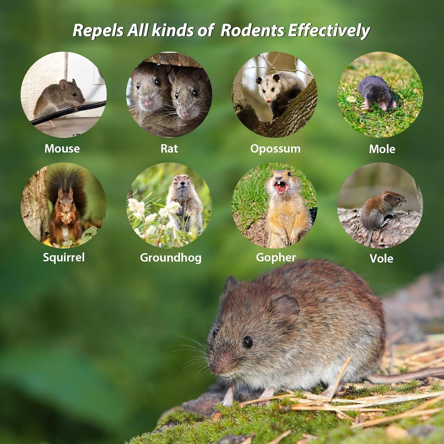 • VERSATILE USE - Rodent repellent indoor outdoor can efficiently deter kinds of rodents such as mouse, mice, rat, mole, vole, gopher, groundhog, squirrel, bamboo rats, chipmunk and more; Rodents often shelter in some hidden spaces to damage your property, Homsor rodent repellent for car engines can prevent rodents from entering, nesting or foraging in your house, warehouse and etc