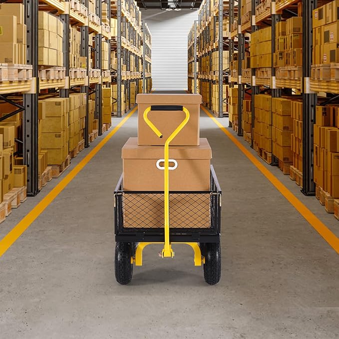 VEVOR 900 Lbs Heavy Duty Steel Garden Cart, Garden Wagon Cart on Wheels, Outdoor Metal Yard Utility Wagon Carts with 10" Tires and Mesh Removable Sides(Convert to Flatbed) and 180°Rotating Handle