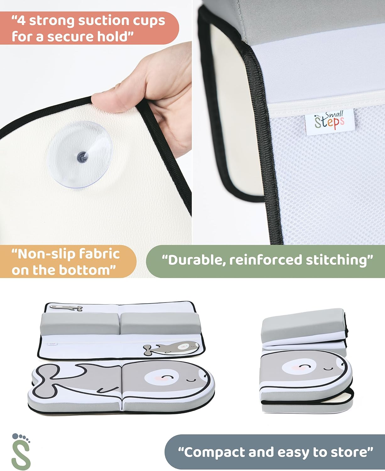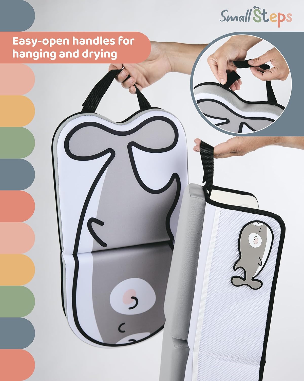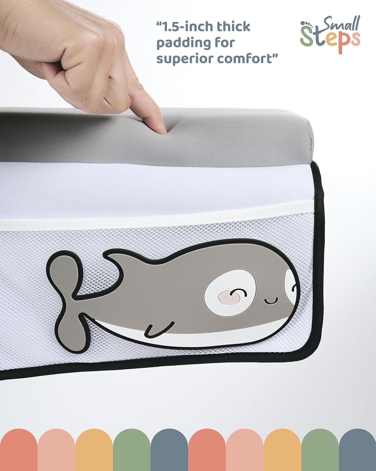 Small Steps Bath Kneeler and Elbow Rest Pad Set – Ergonomic Baby Bath Kneeling Pad with Memory Foam and Non-Slip Design – Orca-Themed Comfort with Handy Pockets for Bathing Babies and Kids