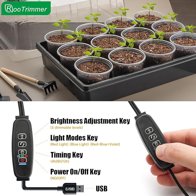 • 【Science-Backed Plant Booster】Nurture stronger seedlings with our 20W LED lights featuring red/blue/violet wavelengths (4000K ideal for growth). Three brightness levels + 3 auto-timer modes (6/9/12hr) let you mimic perfect sun cycles. Flexible gooseneck arms clip securely to trays or stand alone—keep nurturing seedlings even after removing domes! Watch roots flourish under optimal light year-round.