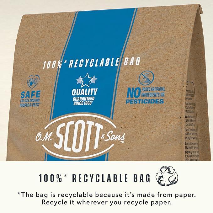 • Apply using a Scotts spreader and lightly water daily for two weeks; after application, toss the recyclable bag in your curbside recycling bin where available