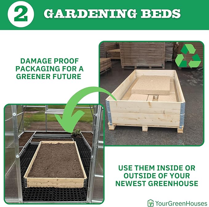 • SUSTAINABLE MULTI-USE PACKAGING: Reduce waste with sustainable wooden packaging that converts into garden beds; Protect the planet while building your perfect green house for winter with innovative, reusable materials