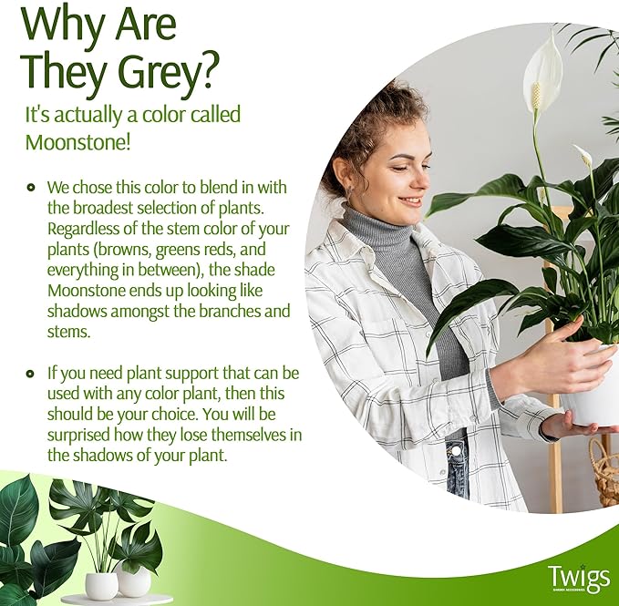• DURABLE PLANT SUPPORT STAKES: Proudly made in the USA, Twigs Garden Accessories plant support are constructed from non-corrosive, UV-protected plastic. These chemical-free stakes provide long-lasting support, ensuring your plants grow properly without compromising on aesthetics.