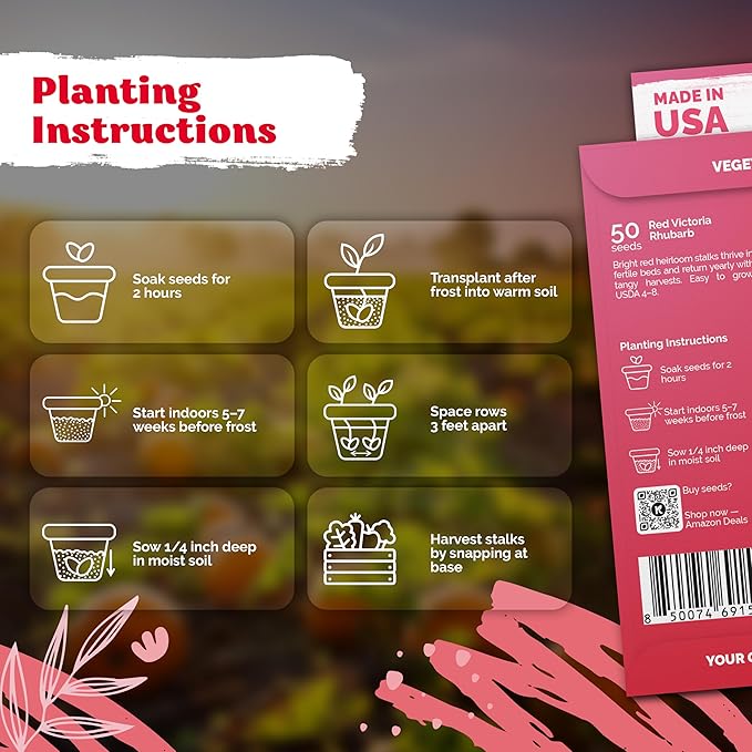 • High Germination Rate: Soak red victoria rhubarb seeds for 2 hours, then sow 1/4 inch deep. Rhubarb seeds for planting thrive in USDA Zones 4–8, perfect as vegetable seeds for planting outdoors.