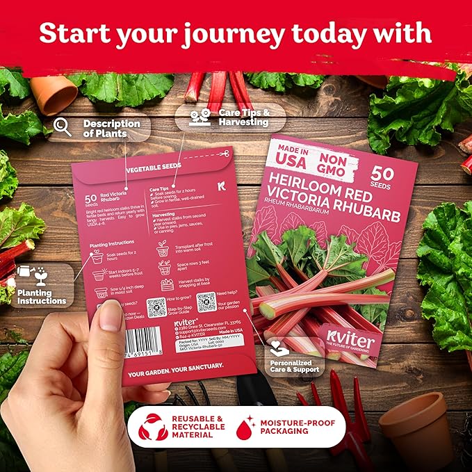 KVITER 50 Red Victoria Rhubarb Seeds for Planting (Rheum Rhabarbarum) – Organic & Heirloom Seeds, Perennial Vegetable Seeds – Perfect for Rhubarb Jam & Pies, Grow in Beds & Outdoor Garden