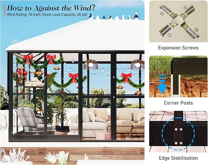 • Improved Ventilation and Gutter System: Our sunroom kit features 2 windows ensuring better air circulation, drainage holes and attached pipes to collect and drain water