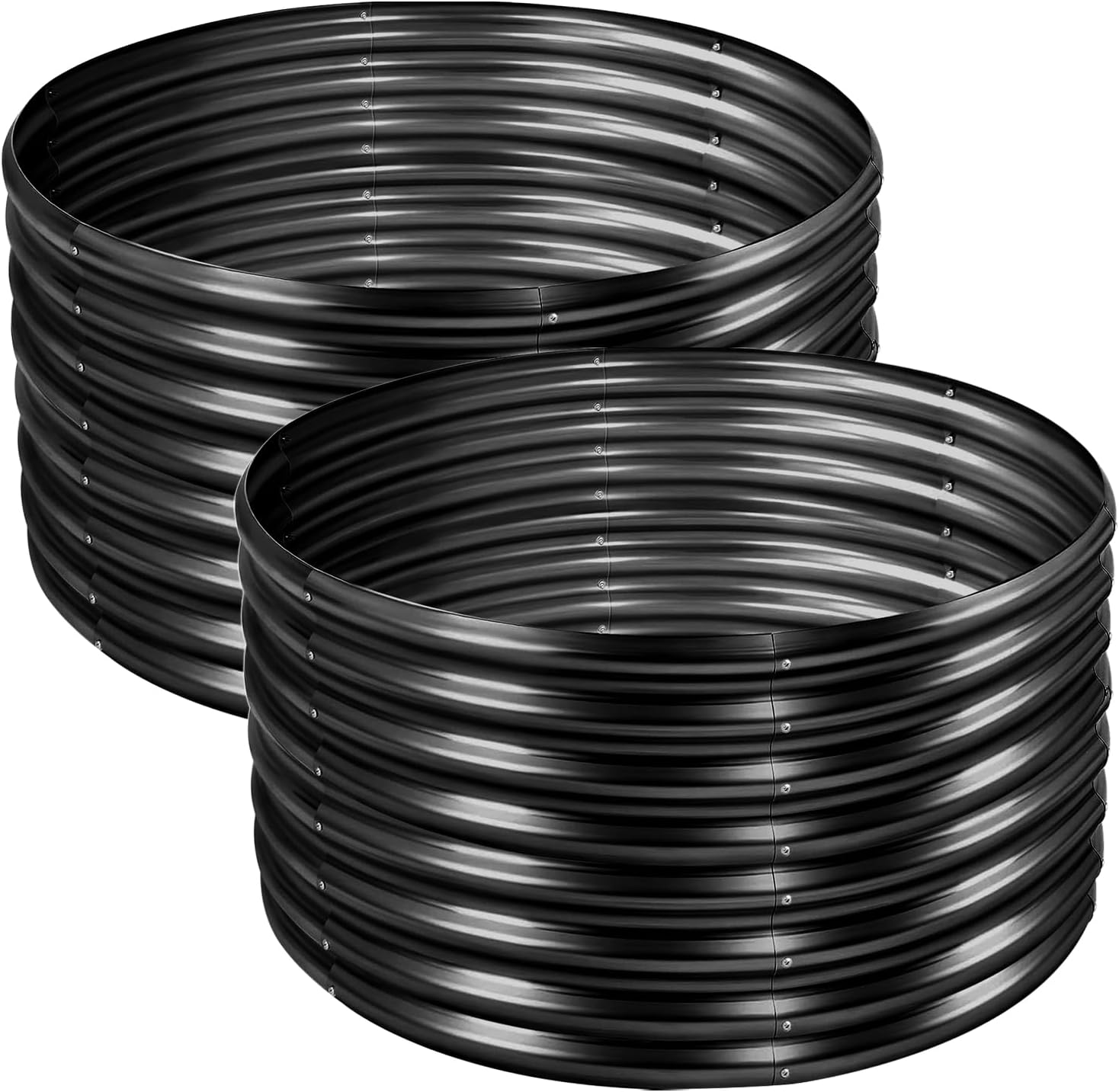 Land Guard 4×4×2ft Galvanized Raised Garden Bed Kit 2Pcs, Planter Raised Garden Beds Outdoor, Round Clearance Raised Garden Beds for Gardening Vegetables (Gray)
