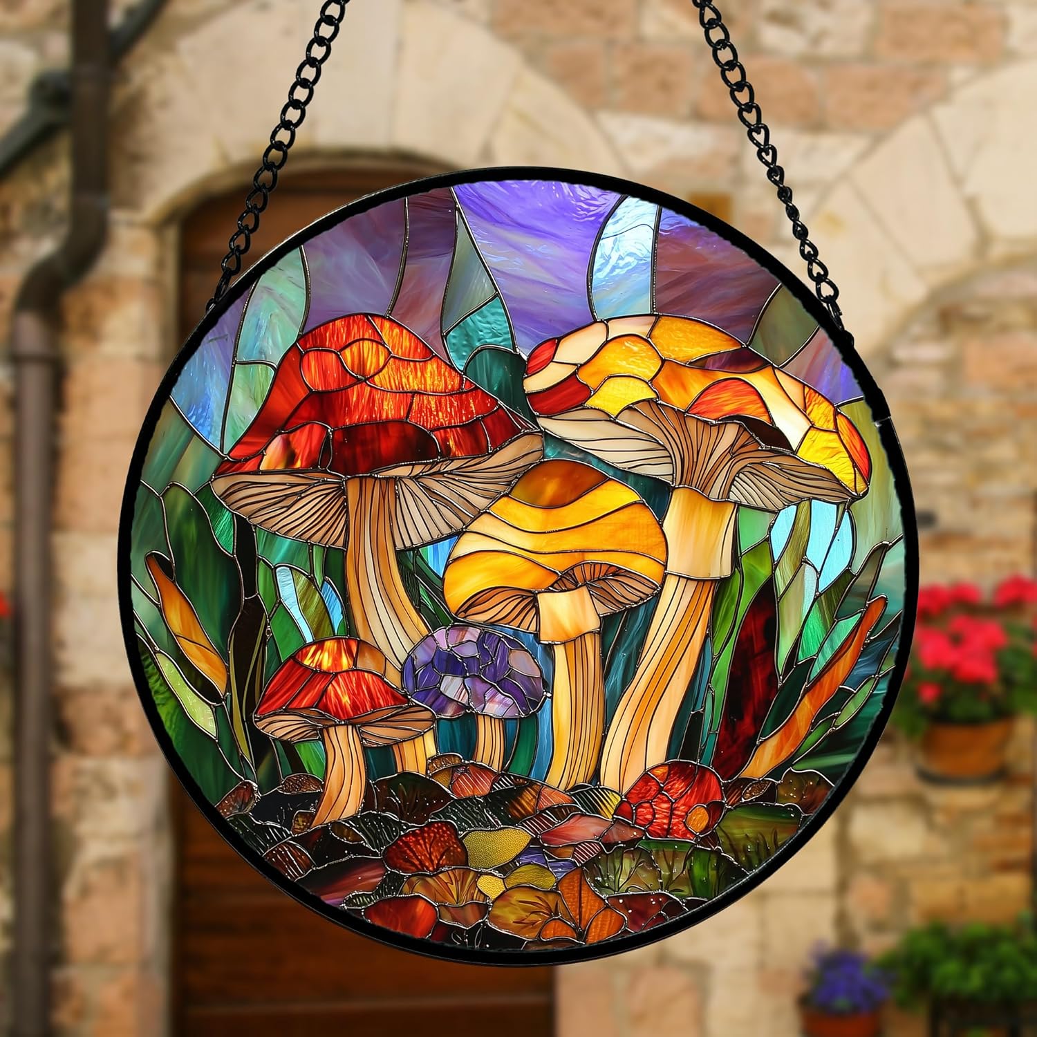 Stained Glass Window Hanging, Jungle Mushrooms Sun Catchers Diamond Glass Panel Hangings Plant Suncatcher Decor for Birthday for Women, Men, Wife, Aunt, and Mom 11.8x11.8 in