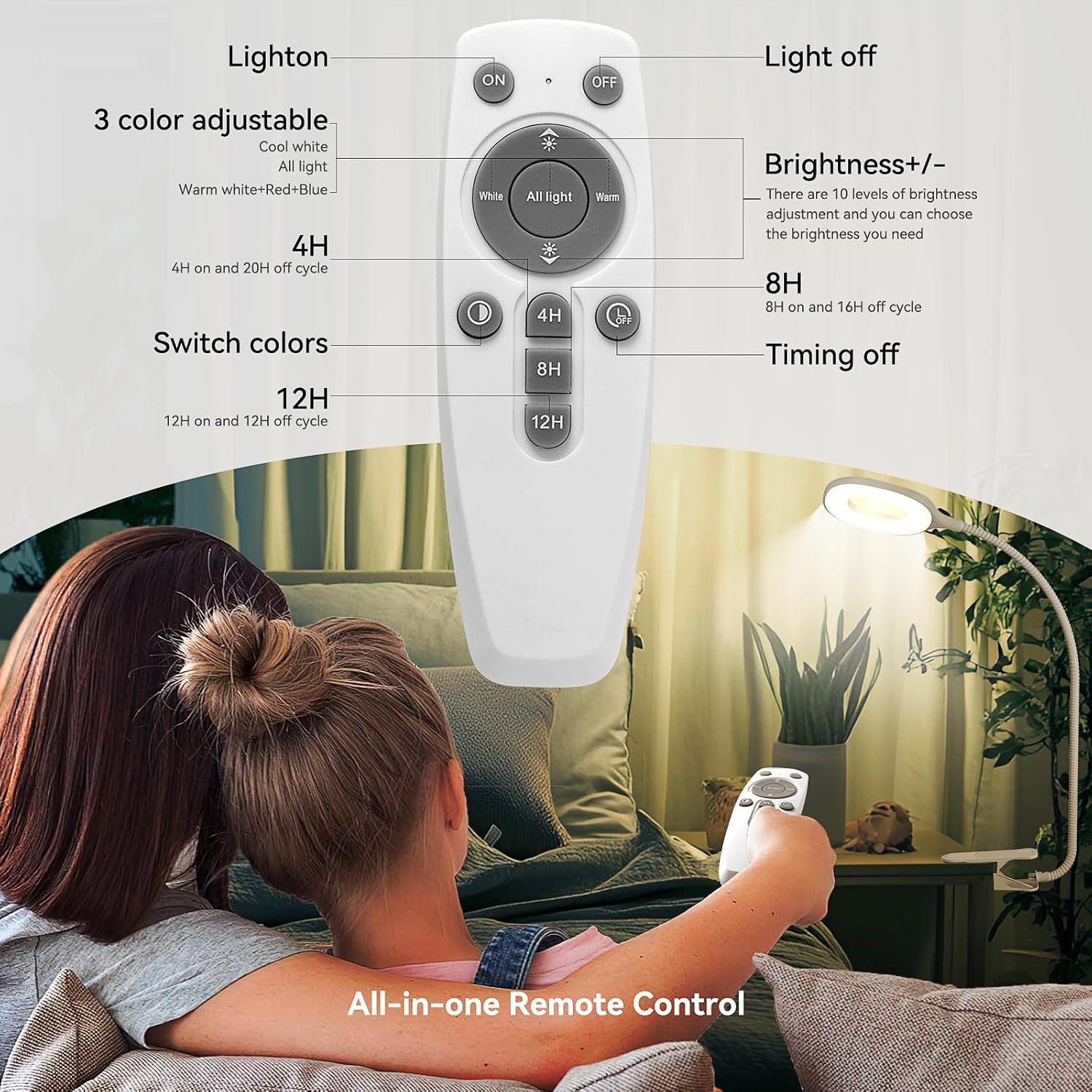 • Upgraded Dual Controllers: This indoor plant light features adjustable push-button settings, which is more convenient and artistic. You don't need to find the cord under table! Included a Remote, change settings from a distance—perfect for shelves or hard-to-reach spaces