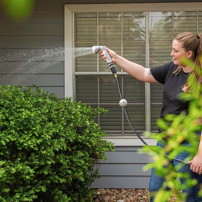 • All-in-One Combo Set: This set includes a hose case, wall bracket, hose, quick connectors set, and two versatile nozzles, offering a wide range of watering options. The 9-pattern spray nozzle is ideal for irrigation, while the adjustable pressure nozzle is perfect for heavy-duty cleaning. The quick connector set allows for easy switching between tools without the need for fittings.