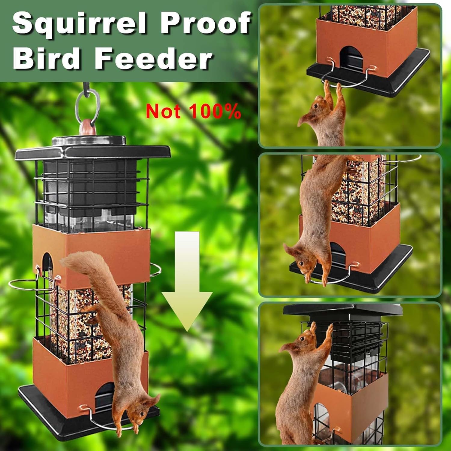 • Ultimate Squirrel Proof Bird Feeder: Our hanging bird feeder features a foolproof weight-activated spring mechanism that effectively keeps squirrels away from the birdseed. When a squirrel tries to access the wild brid feeder, the spring is triggered, instantly blocking their access and safeguarding the birdseed in the birdfeeder exclusively for your beloved feathered visitors.