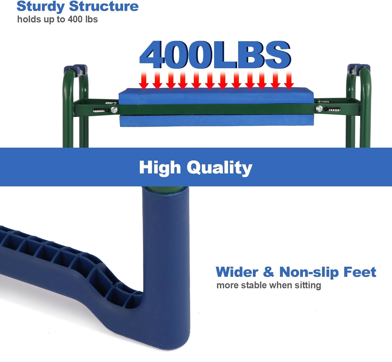 • NO-Slip Feet and Square Tube Seat Frame:the seat rib of garden kneeler is made of square tube insteand of plastic ,it is more sturdy and durable.it can hold 330-400 ponds weight.The non-slip designed feet makes it more steady while sitting