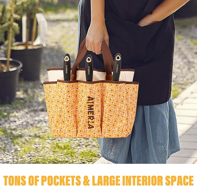 • THE BAG THAT LAUGHS AT CHAOS! - 8 pockets, tough fabric, leather handles—this bag cradles tools like royalty. No more “Where’s my trowel?!” meltdowns. Organized bliss, dirt included.
