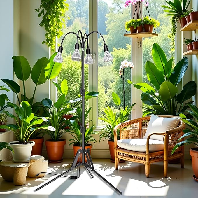 - Adjustable Height & Easy Installation: SANSI led grow light feature an adjustable height range of 35 to 64 inches, making them versatile enough to suit most indoor plants, from small potted varieties to tall plants. The 360-degree flexible gooseneck and 4-head design ensure optimal light distribution across a wide area. Installation is quick and easy, requiring no tools
