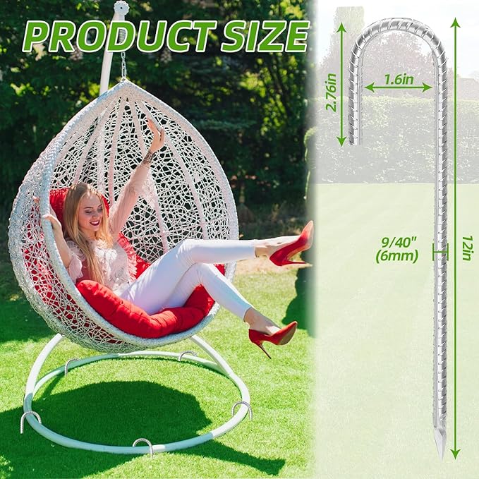 - 【12 Inches Rebar Stakes】The Metal Stake Sold In Bundles Of 20 Pieces.20 Inches Length From Tip To Hook,9/40Inch (6mm) Diameter J Stakes.The Hook Is 2.76" And Spacing Is 1.57",Have A Cutting-Edge Bottom Design Pefect for Feed Garden,Camping Tents,Greenhouse,Canopies,Gazebos And Giant Inflatables Etc To Conquer Any Terrain With Confidence! The Surface of The Ground Stakes Has A Galvanized Coating, Letting You Say Goodbye To The Worry Of Rust And Ensuring Repeated And Long-Term Use!
