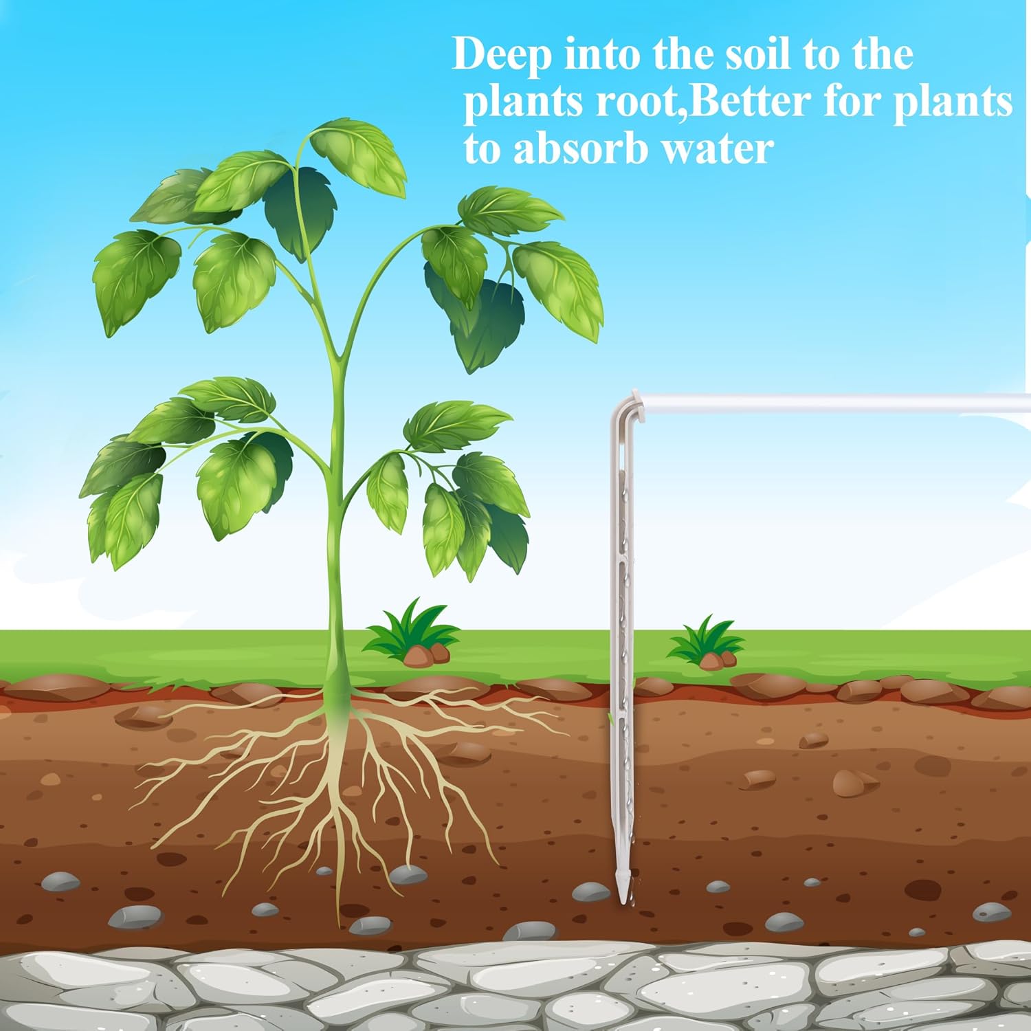 • 【Easy to Use】The automatic irrigation drippers can be directly connected to1/4 inch drip irrigation tubing or inserted into a 1/2 inch or larger drip tubing use our hole punch, and insert bend drip emitter stake into the soil, which can provide precise water control without wasting water. You no longer need to personally water each potted plant, solving the problem of inaccurate watering and preventing plants from being unable to survive due to over watering or under watering