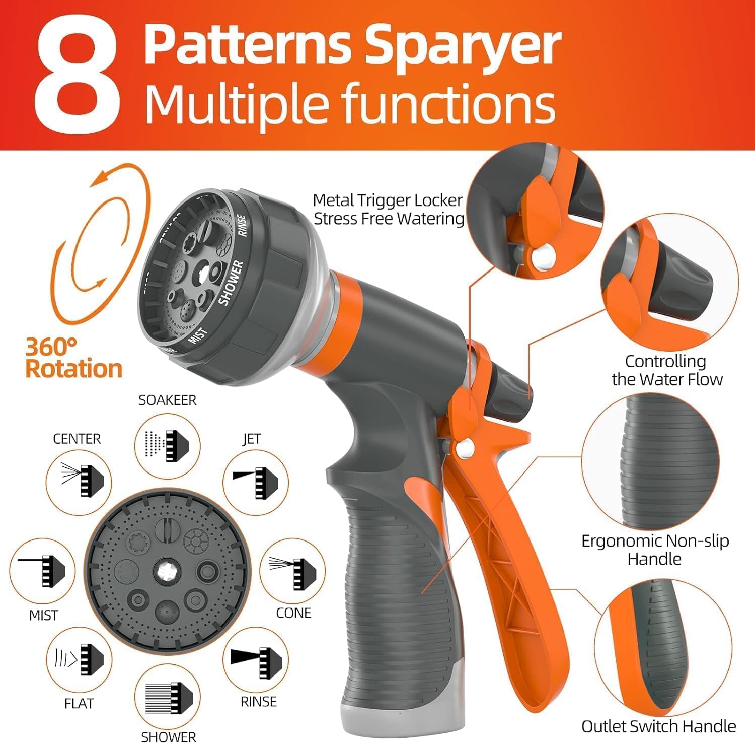 • LEAK PROOF AND STURDY: The 3-layer reinforced structure rubber hose has extreme toughness, which can easily bypass trees, grass and walls
