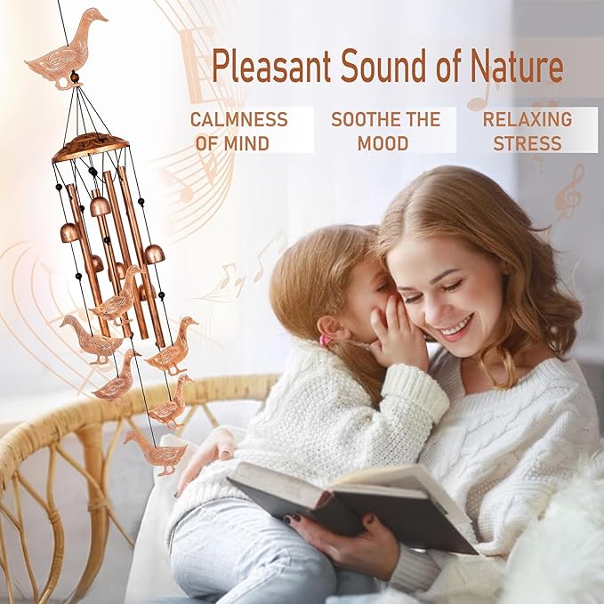 - Nature's Melody: The gentle breeze brings this duck wind chimes outdoor to life, the aluminum tubes and bells collide to create a soothing, lilting, and subdued melody. Whether you hang it in your garden, patio, bedroom, living room, hallway or window, for you, the breeze blowing outdoor wind chimes is a pleasure, feel the stress melt away, transforming ordinary moments into tranquil experiences.