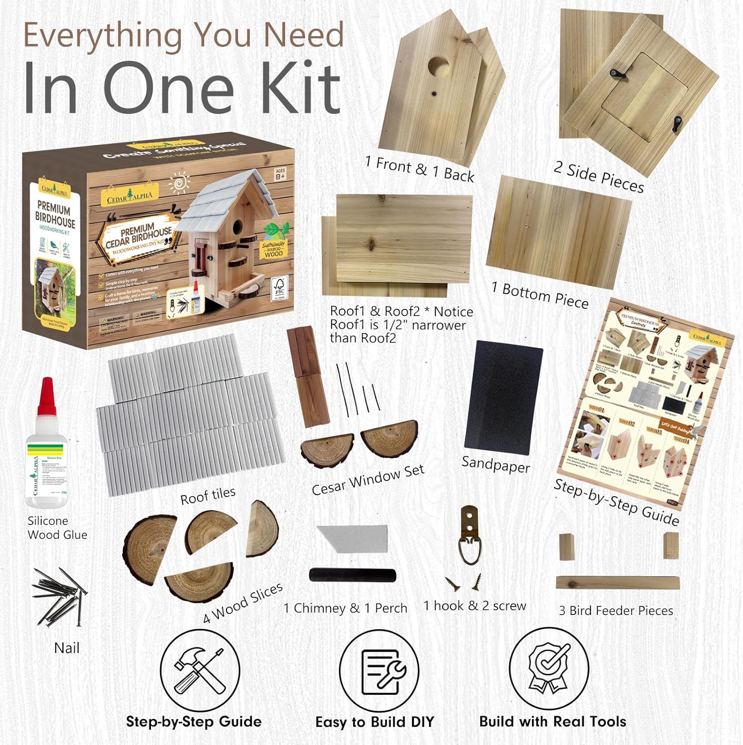 • Foster Practical Life Skills: Unlike other craft kits, Cedar Alpha has real wood for skills to build real things. Our DIY birdhouse kits are designed for youth and adult arts and crafts projects.