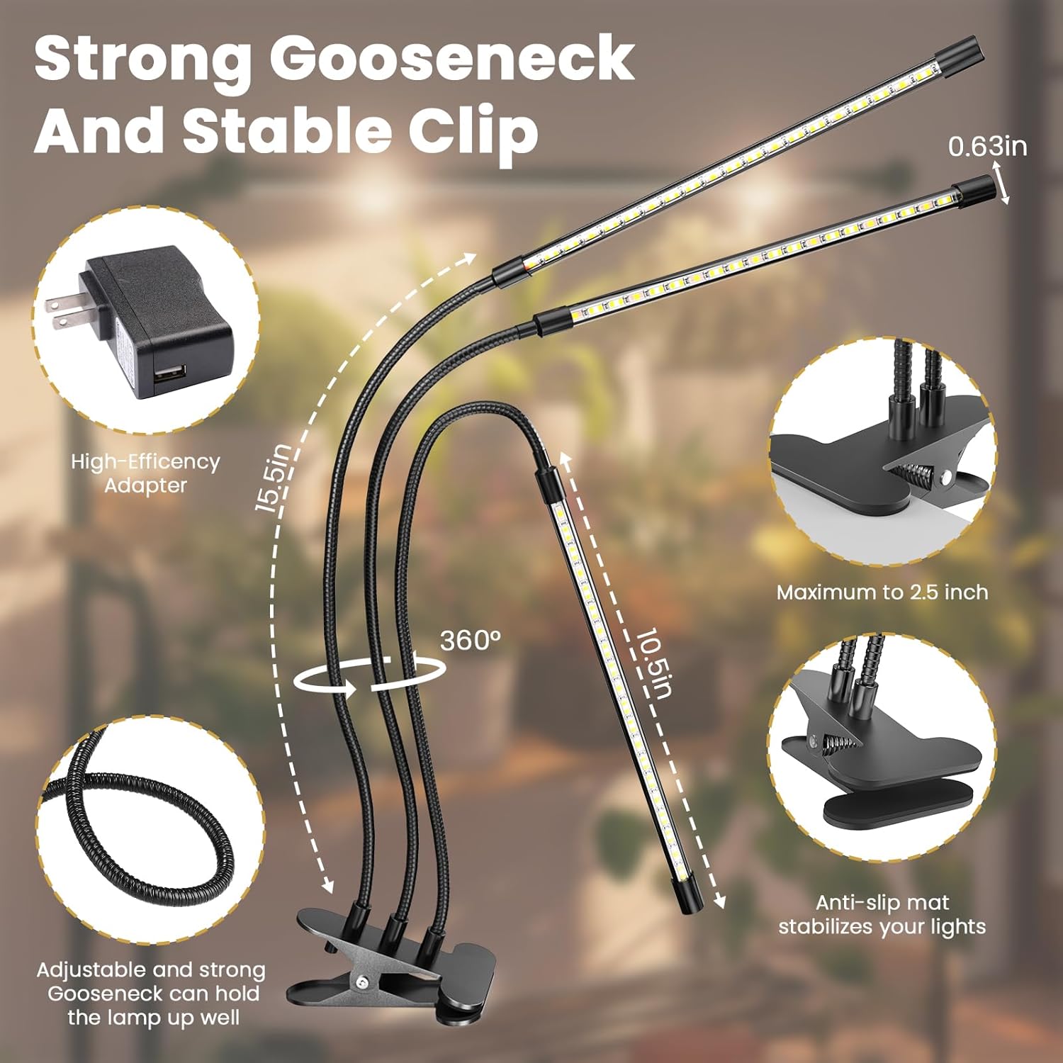 • Strong and Stable: The metal gooseneck is strong enough, with a non-slip mat design, which can fix the lamp well and make the grow light stand.