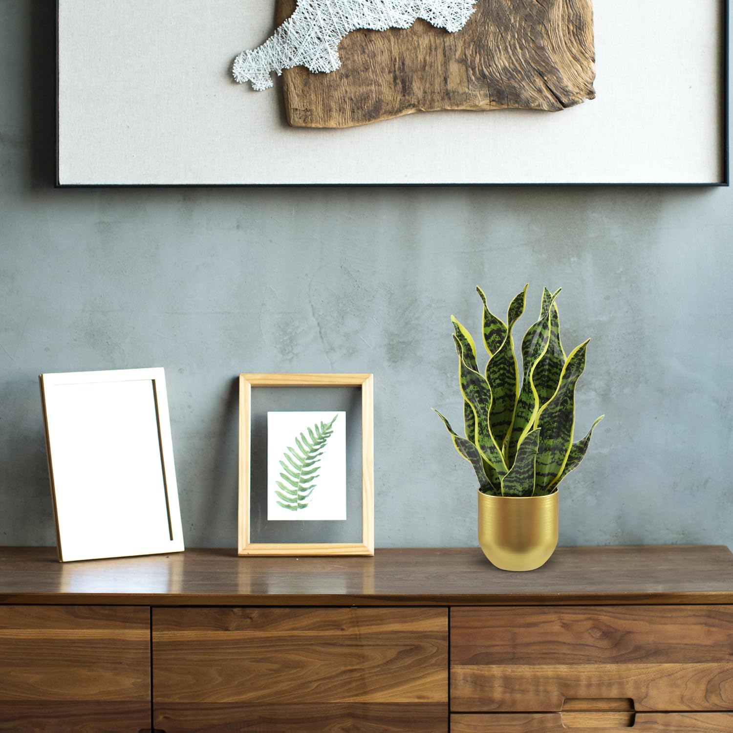 Hollyone Artificial Snake Plant Potted Faux Sansevieria Trifasciata Plants, 16.9" Tropical Mother in Law Tongue Fake Plants in Metal Gold Pots for Home Office Room Indoor Decor Housewarming Gifts