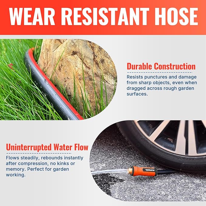 • [All-Weather Use] The reinforced hose has a clear protective outer layer to protect against sun damage and maintain its shape, strength, and flexibility between 32 ° and 140°F.
