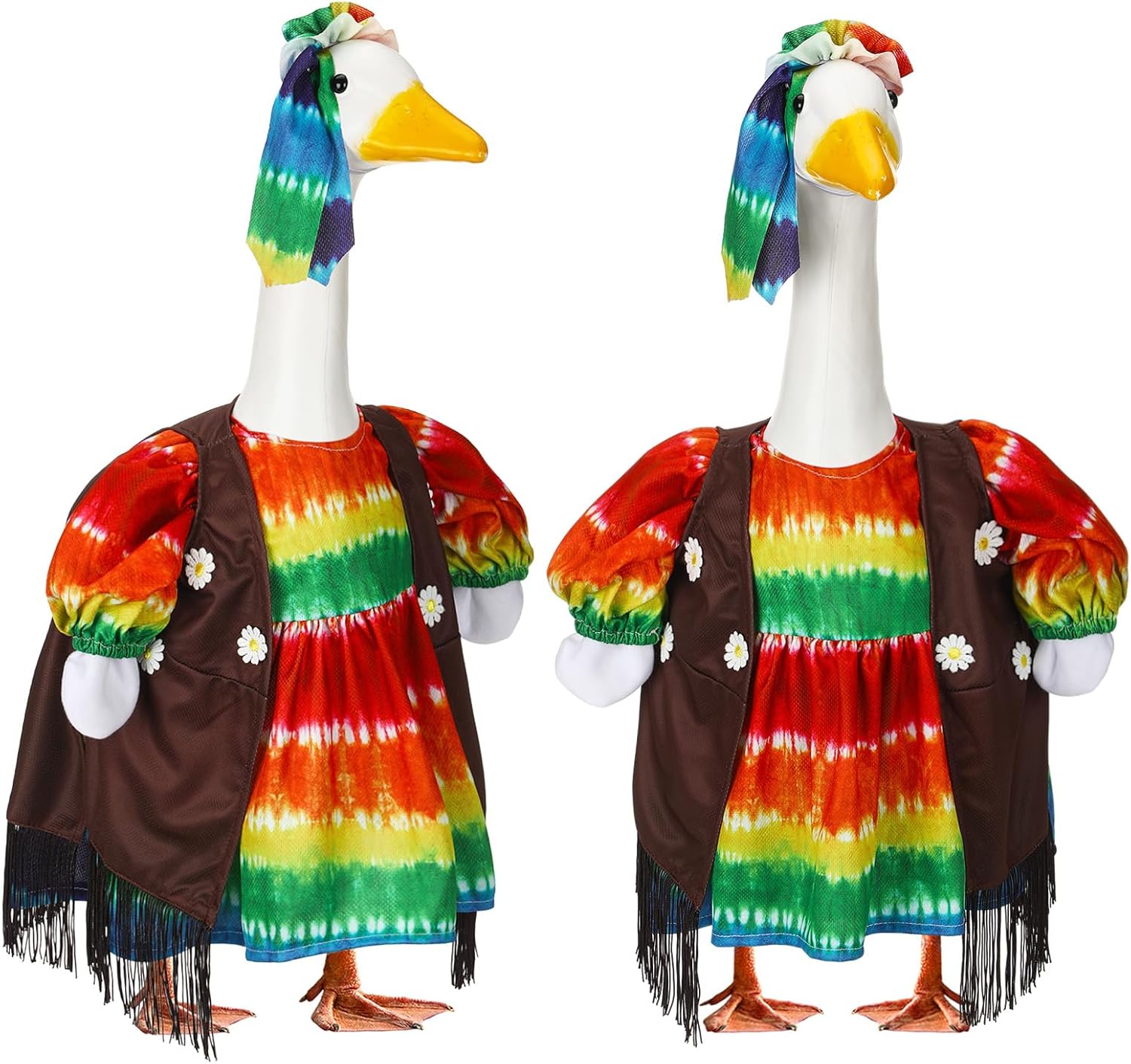 Suzile Hippie Goose Outfit Tie Dye Party Decoration Dresses Clothes for 23" High Cement or Plastic Porch Goose Costume for Holiday Yard Lawn Outdoor Garden Patio Groovy Party Rainbow Pride Statue