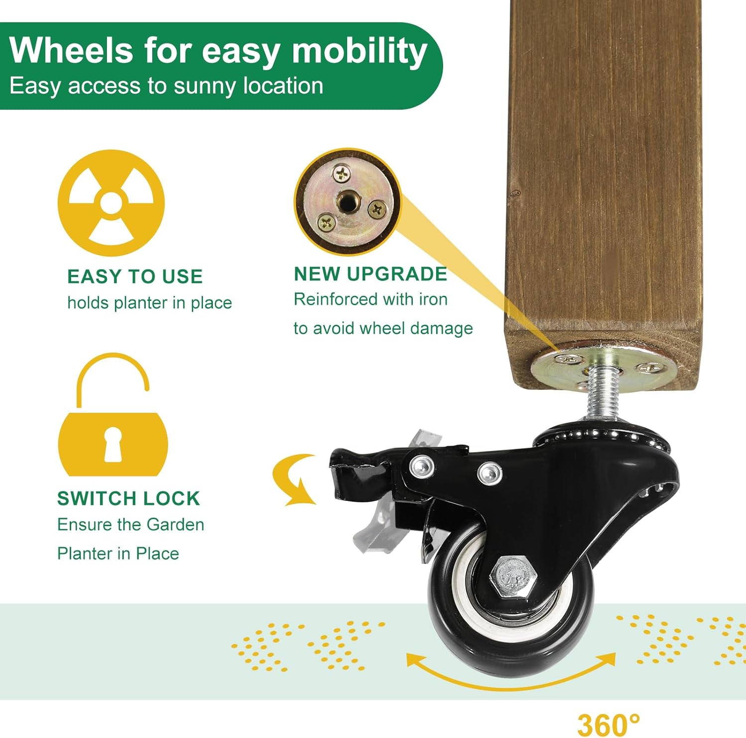 • 【STURDY & LONG-LASTING】:This elevated garden bed is built with Reinforced wheels and newly added W-shaped connectors, ensuring superior stability for extended outdoor use.