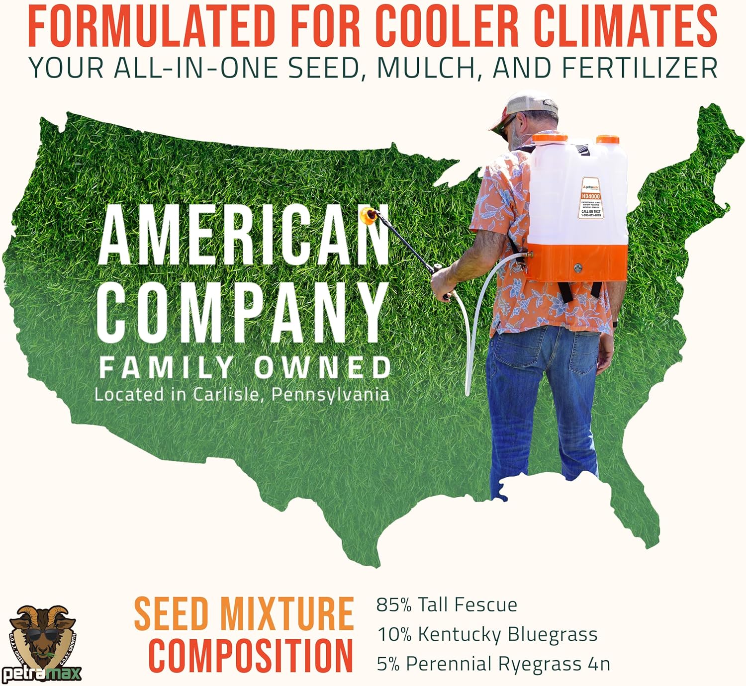 • American Family-Owned Company & USA Support: PetraMax is a USA-based company located in Carlisle, Pennsylvania. All PetraMax products have a 100% satisfaction guarantee and excellent USA customer service members waiting by the phone to answer any questions you may have. PetraMax continues to work hard to deliver top-quality sprayers & solutions to keep your home, lawn, and places of business clean, green, and safe.