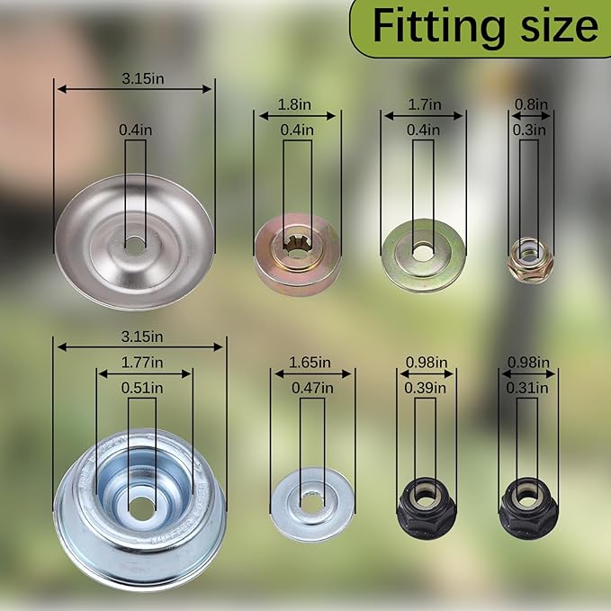 • Two Pack Different Adapter Kits: First kit is Blade adapter attachment kit contains 1 x Thrust Washer/ 1 x Rider Plate/ 2 x different size Collar Nut/ 1 x Screwdriver/ 2pc x L-Wrench/ 1pc x T-Wrench/ 2pc x washer. The Second is Blade Adapter Kit: 1 x Thrust plate guard washer / 1 x Thrust washer/ 1 x Rider plate/ 1 x Lock nut/2 x washer .