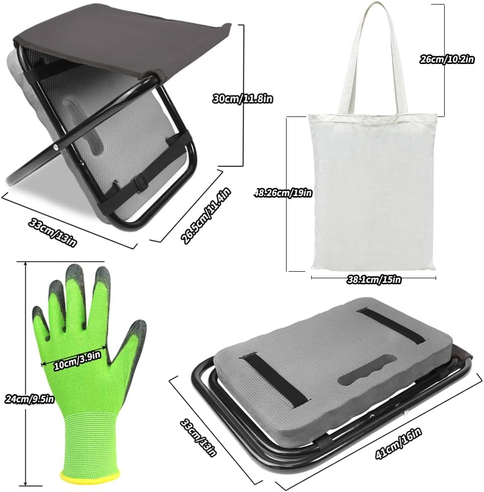 Garden Kneeler and Seat 2 in 1, Thick Soft Kneeling Pad and Foldable Gardening Stool with Gardenig Glove and Carry Tote Bag, Gardening Gifts for Women, Seniors, Mum and Dad (Grey)