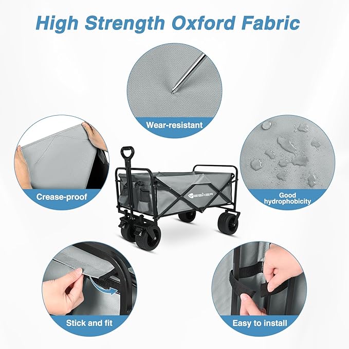 • Durable & Sturdy Construction - Built with a robust iron frame and 600D Oxford fabric, this foldable wagon is designed to withstand heavy loads and rough terrains, ensuring long-lasting performance.
